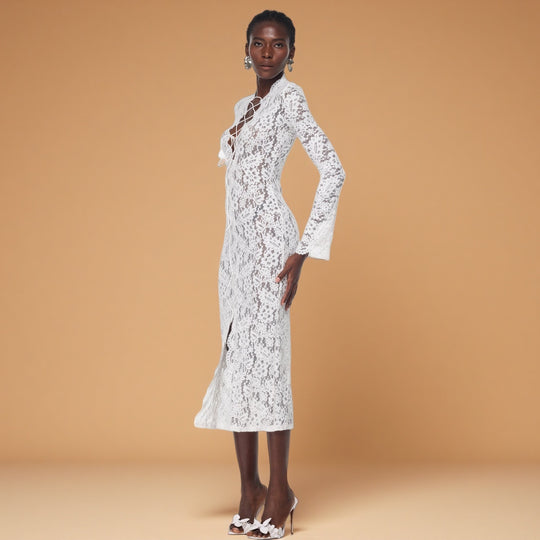 Babirye Lace Maxi Dress – Ivory Elegance