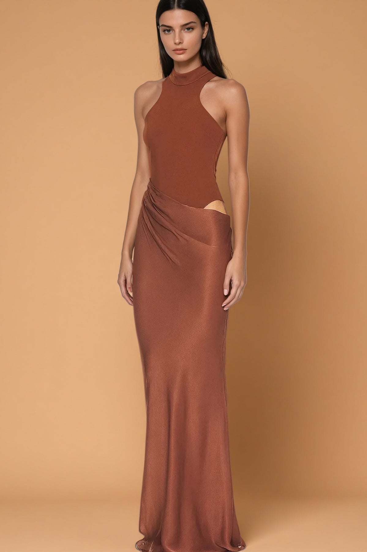Le design débardeur apporte une touche moderne, tandis que la longueur maxi offre élégance et confort.