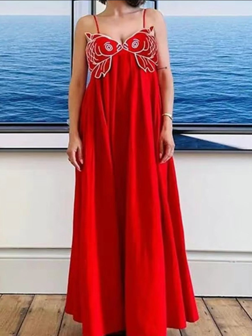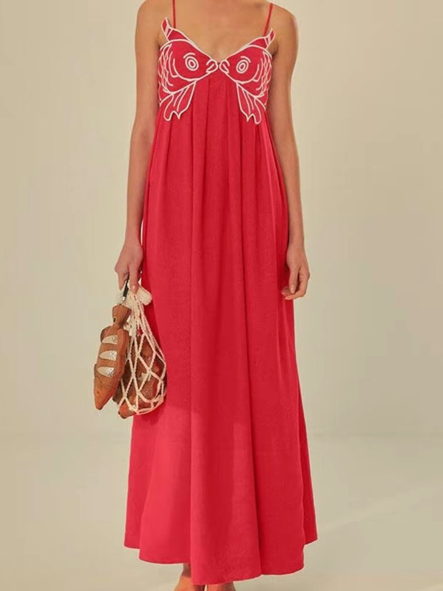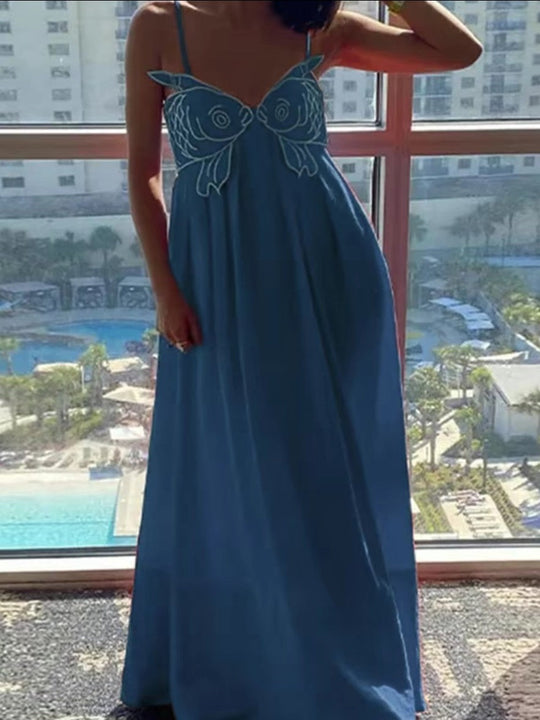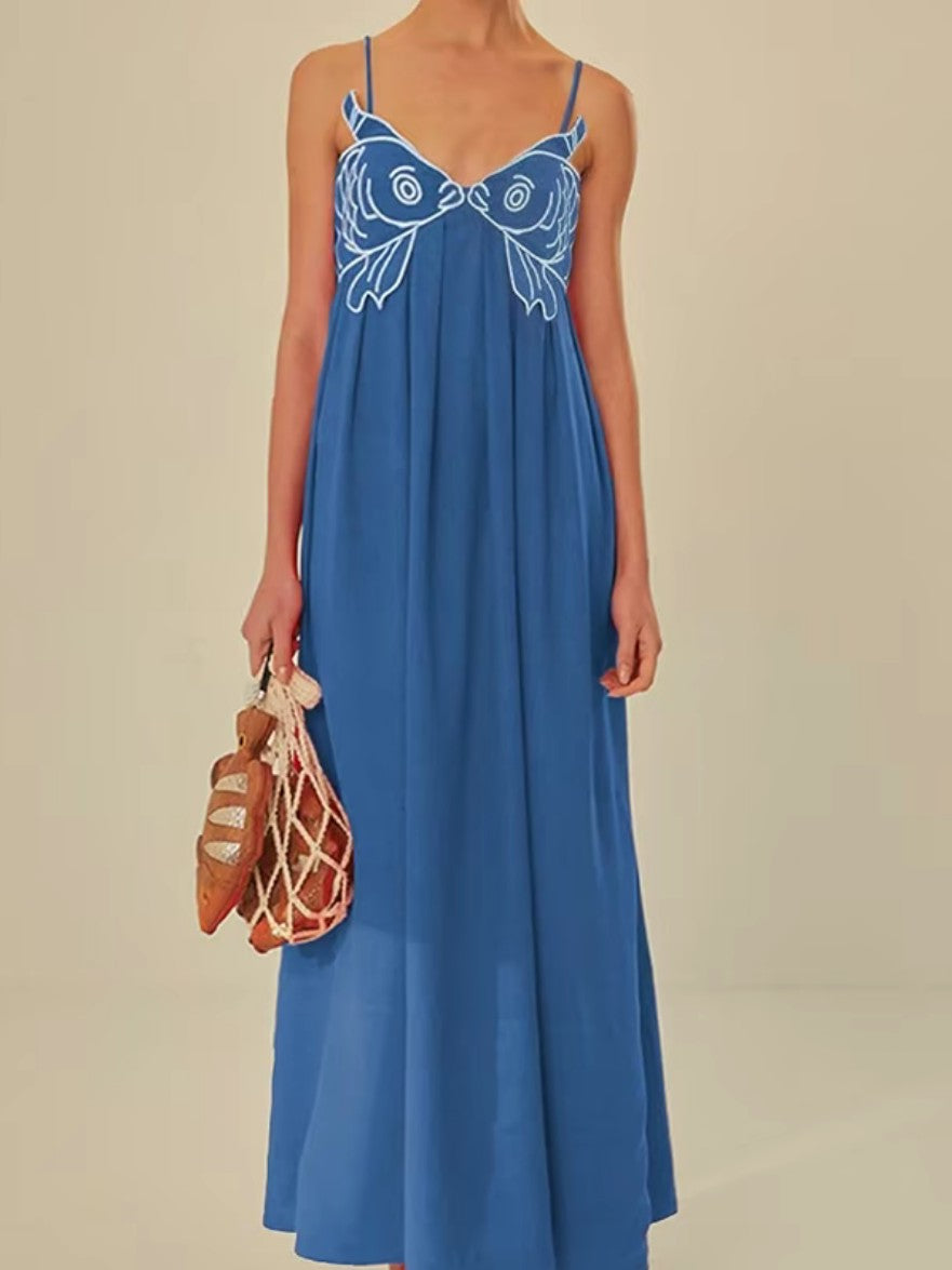Poisson d’Été – Robe Longue d’Été avec Broderie Artistique
