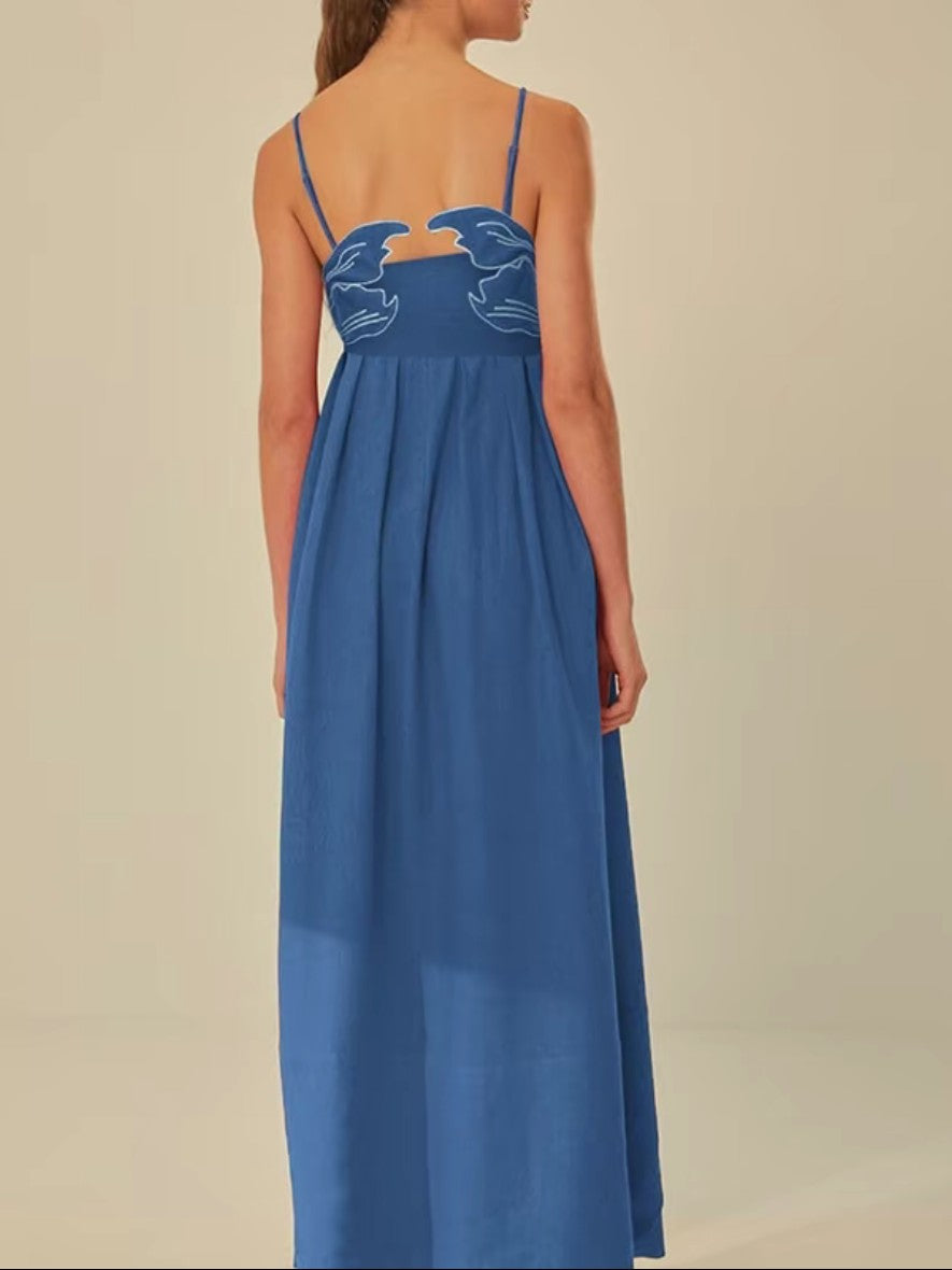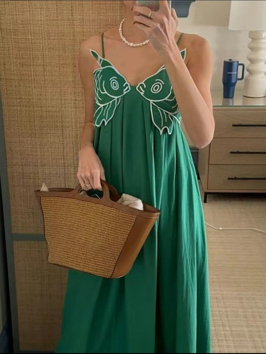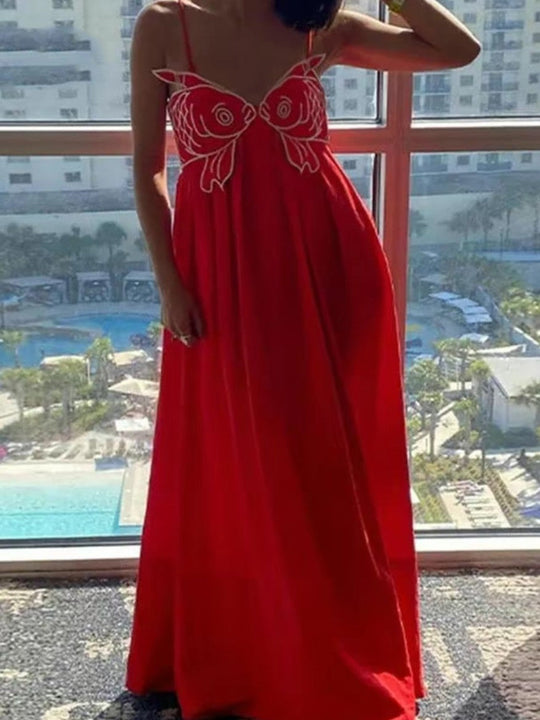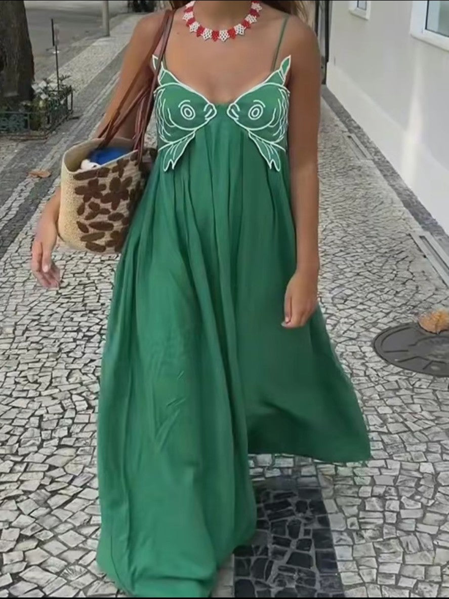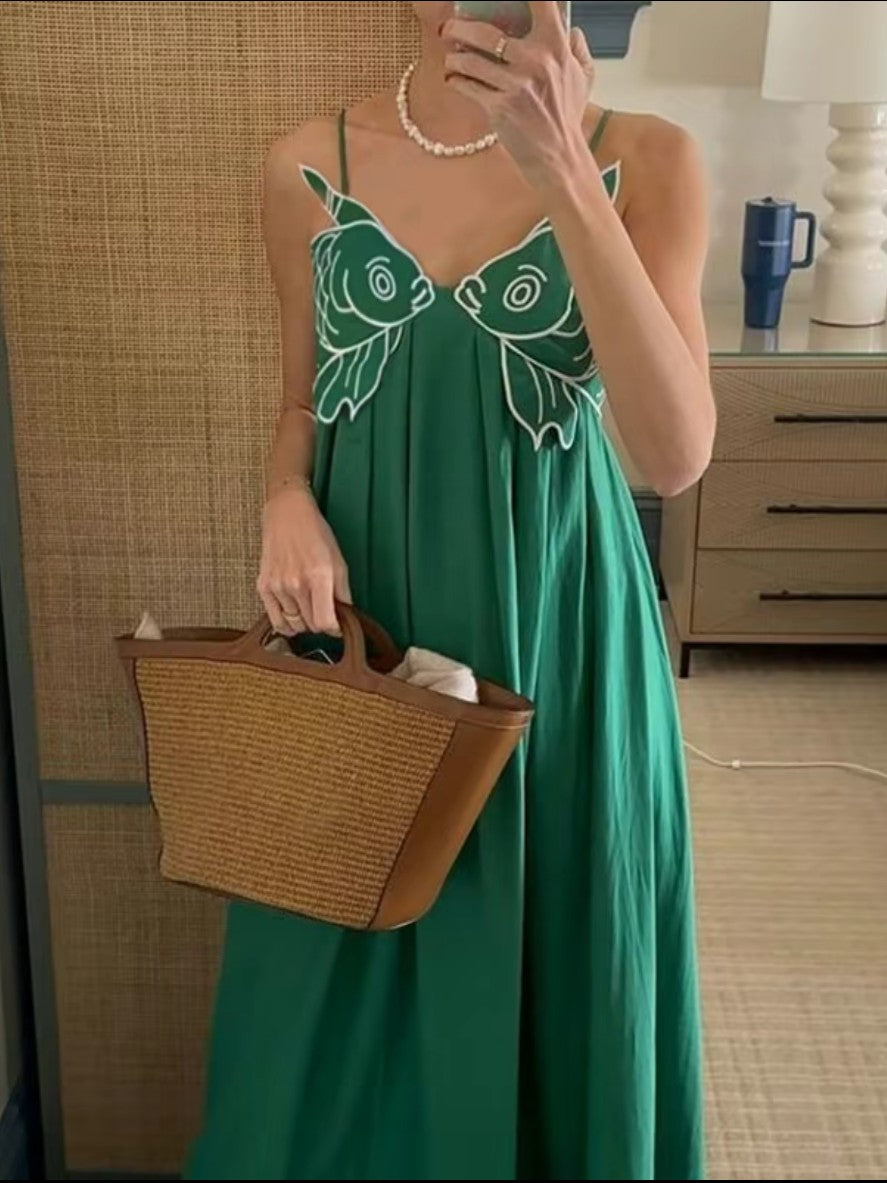 Poisson d’Été – Robe Longue d’Été avec Broderie Artistique