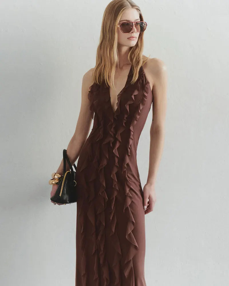Robe Soleil d’Or – Volants Élégants & Couleurs Chaudes